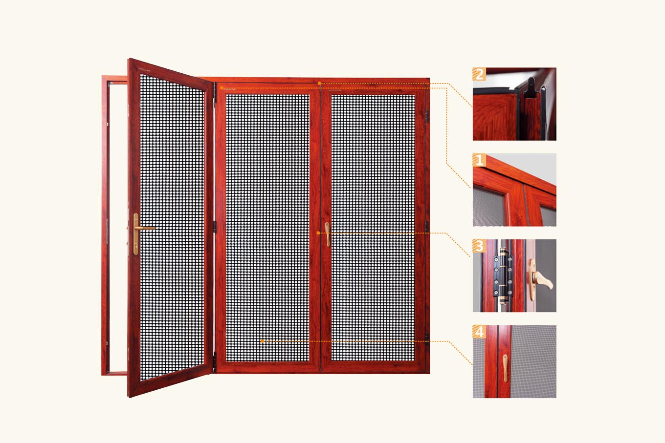 紗網安裝采用折邊后用鋼壓條固定在開啟扇上,確保安裝牢固可靠,具有防盜功能。