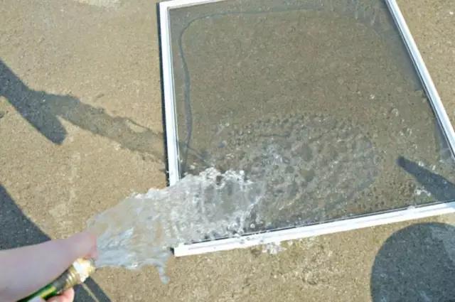 3、再用水管沖洗,或將紗窗立放在排水的地方,靠墻,用噴壺噴水沖洗;